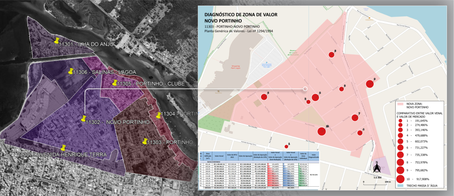 O setor de Geoprocessamento do município de Cabo Frio concluiu em 2022 a elaboração de mapas de diagnósticos voltados para a atualização da Planta Genérica de Valores (PGV), instrumento essencial para a definição dos valores de referência imobiliária utilizados na base de cálculo do Imposto Predial e Territorial Urbano (IPTU) e de outras taxas municipais.